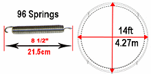 HighJump 4,3 m. Pour connaître la taille d'un ressort, détachez-le du trampoline (pour pouvoir le mesurer quand il n'est pas sous tension) et mesurez sa longueur totale (d`un crochet à l`autre) |