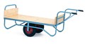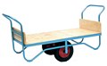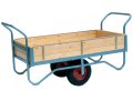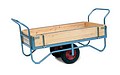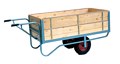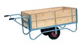 sides fold down), made from wood and steel, with 40cm pneumatic tyres and