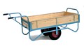 Our Stubbs balance carts are strong, and are designed to save you a lot of wasted effort. Although the carts shown here are called Estate Carts (they are often deployed on large estates and farms), they are also ideal for use in domestic gardens by members of the public who are looking for something that is a step up from the types of carts that are generally available, and a bit special in terms quality, style and durability. Our estate barrows have a large carrying volume and are highly maneuverable too. With two 40cm pneumatic tyres balancing the cart in the middle, you will not need to lift your load (as you do with a non-balanced barrow), you just push (or pull) it. Also, our estate barrows are designed not to tip over under heavy loads, even when you are turning corners, which is always a risk with one-wheeled barrows. These are not the only two-wheeled carts available, but they are probably the best you'll find, and their traditional timeless steel and wooden construction style really are a joy to behold - we are very happy to recommend them!
