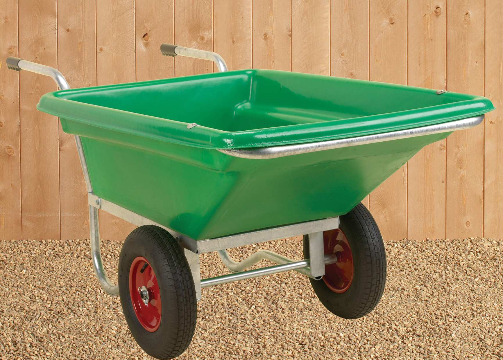 Weight 31kg. 40cm 4 ply pneumatic tyred wheels. - Moves clippings, leaves, pots, logs, paving and tools, and