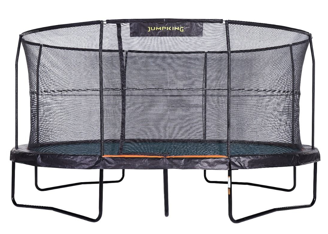 14 ft x 17 ft Oval Ultra with Integrated Safety Net EnclosureThe 14 ft x 17 ft Oval Ultra is a premium, large-format trampoline from JumpKing, designed for family fun, fitness, and high-performance bouncing. Featuring a fully integrated safety net enclosure supported by horizontal shock-corded rods, it provides a secure and expansive jumping arena. Its robust galvanised steel frame with welded joints, high-strength Armorweave bed, and durable XPE foam padding ensure long-lasting performance and structural integrity. Supplied as a complete set with ladder and enclosure, the Oval Ultra offers a convenient, innovative, and safe solution for large gardens, combining superior safety, responsive performance, and easy assembly. - Premium quality 14 ft x 17 ft Oval Trampoline with Safety Net